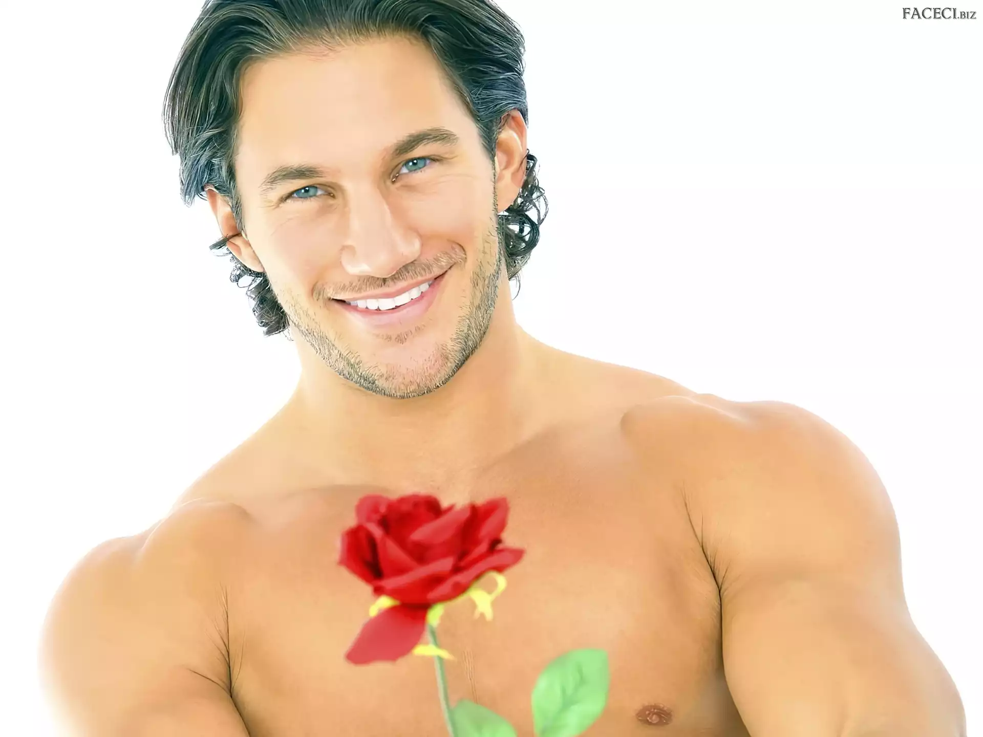 Uśmiech, Róża, Brunet, Czerwona - faceci.biz